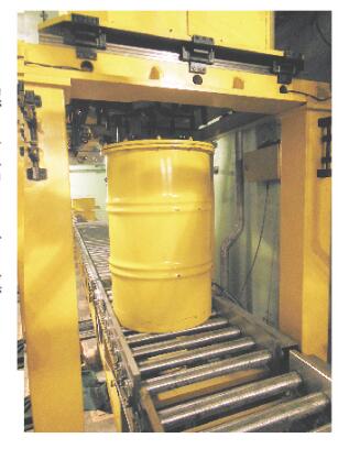 4.從空的鋼桶進(jìn)入、設(shè)備自動(dòng)對(duì)接、找螺栓位置、擰松桶蓋螺栓、抓取桶蓋、空桶離開去裝填區(qū);到裝填料后的桶子返回又一次自動(dòng)對(duì)接、找螺栓孔位置、蓋桶蓋、擰緊螺栓到裝料桶離開,整個(gè)過(guò)程完全自動(dòng);